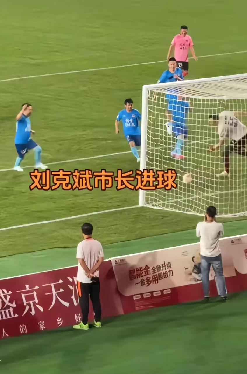 先来说刘克斌副市长,他作为场中唯一一位从政的选手,实力超绝,刚开场两分钟他就成功进球了。