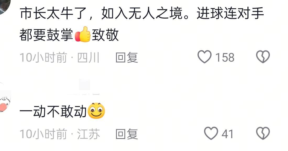 不少网友都调侃对手各个提心吊胆,生怕副市长的球踢不进去。