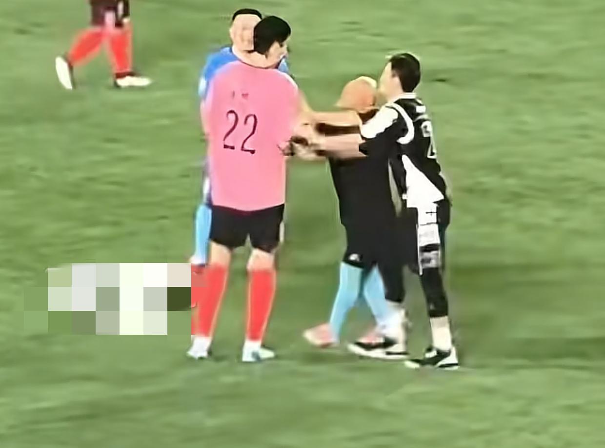 郭艾伦自己也倒地上一边笑一边休息,然而就在他躺地上的功夫,李晓旭直接跑过来踹了他一脚,把他踹得一个翻滚,起郭艾伦爬起来后从兜里掏出一张黄牌就去追李晓旭,还推了李晓旭一把。