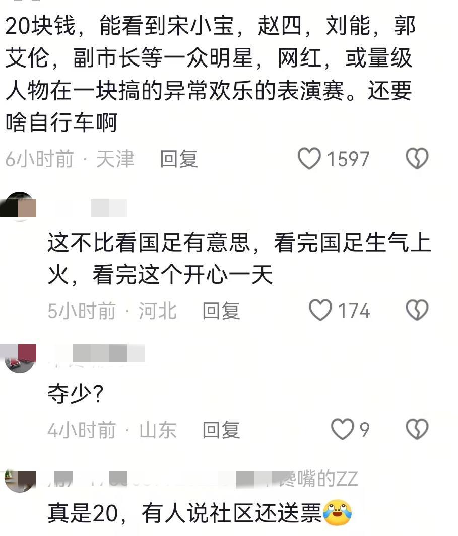 但据了解,这场球赛的门票钱也就20块钱一张,还有一些社区免费送,不管是花了钱的,还是没花钱的,能看一群明星,球星踢球逗乐,已经很值了。