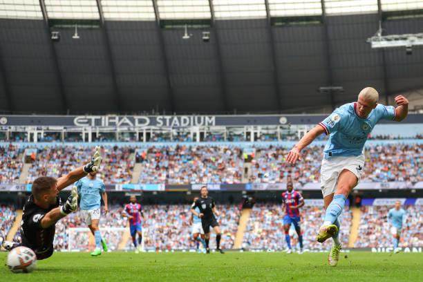 当福登在禁区左侧的持续攻势中起球时,始终在水晶宫两名中卫身后移动的哈兰德,后发先至扳平了比分;而伴随着斯通斯都来到水晶宫禁区内参与争顶,已经摇摇欲坠的客队防线,再一次在混战中漏掉了哈兰德,后者全不费工夫的推射,让曼城在短短8分钟内就实现了从扳平到反超。