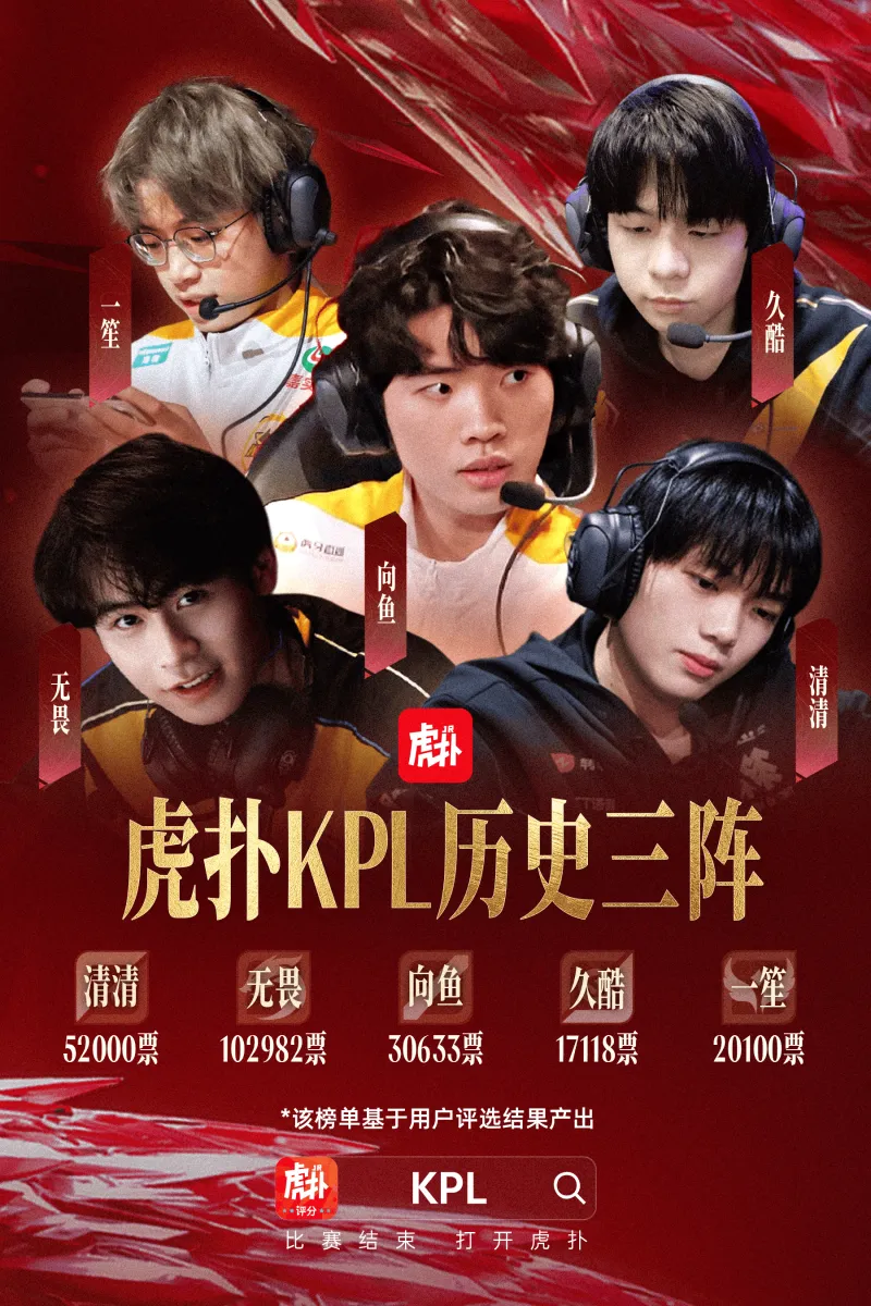 虎扑KPL历史第三最佳阵容:清清/无畏/向鱼/久酷/一笙